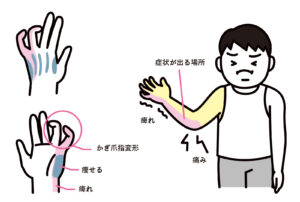 - 手首の痛みや指が動かしヅライ