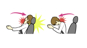 強い衝撃を体に受けることで、頭がおもりとなって首が鞭のようにしなることからムチウチと呼ばれており、事故にあったその時はなんともなく、1〜2日経ったあたりから症状が出はじめます。